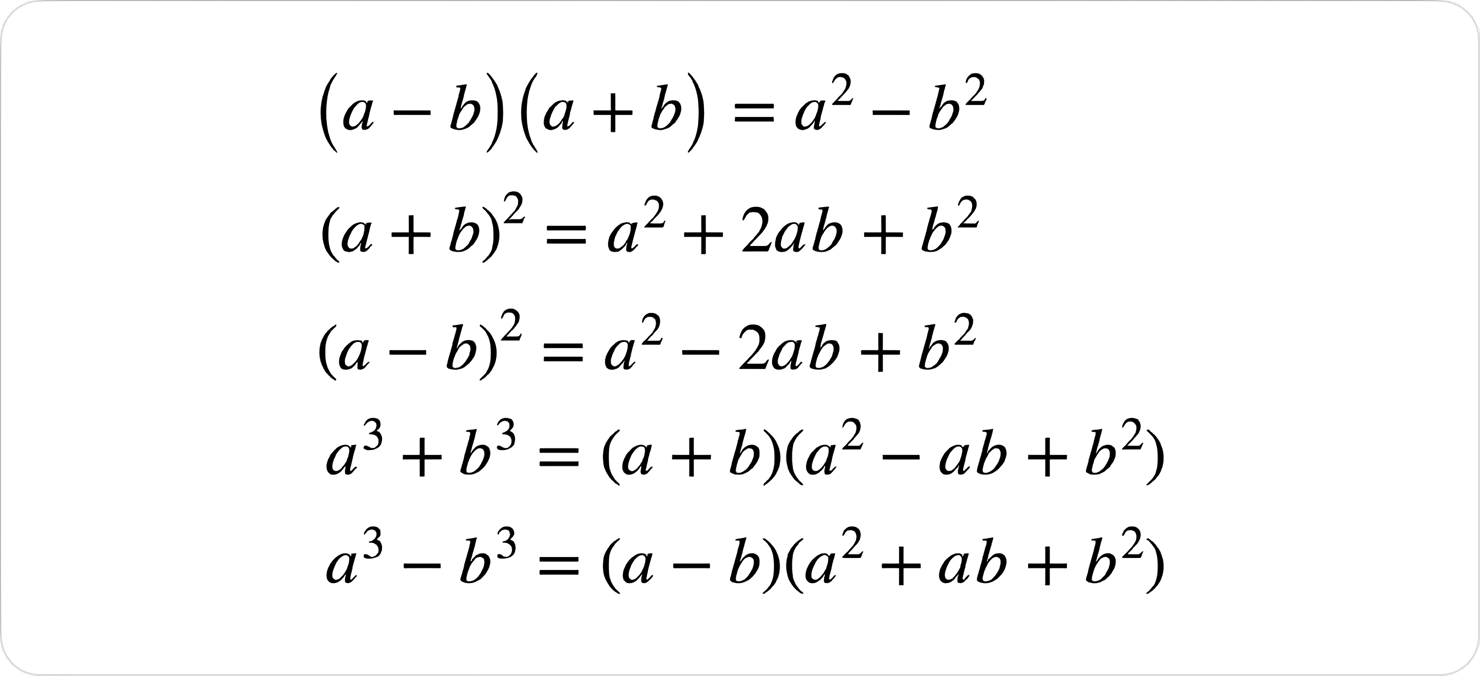 Алгебра — це основа багатьох математичних процесів, з якими ми стикаємося щодня. У 7 класі учні знайомляться з ключовими формулами, які стають фундаментом для розв'язання складніших завдань у старших класах. Ці формули не лише допомагають зрозуміти алгебру, але й є обов'язковими для успішного складання НМТ. Ми підготували для вас невеликий конспект з найважливішими алгебраїчними формулами, які кожен семикласник повинен засвоїти для досягнення високих результатів на іспитах та для подальшого вивчення математики. А також підготували приклади розв'язання відповідних завдань.