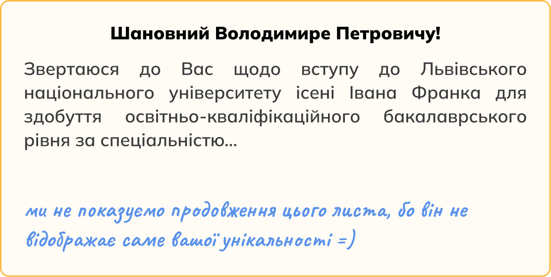 А наприкінці ми поділимося з вами лайфхаками, як зробити лист цікавим та яскравим, щоб ваш омріяний університет точно вас запам’ятав та звернув увагу на вашу кандидатуру.